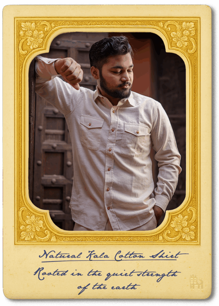 Our designs blend the legacy of Kutch’s craftsmanship with modern aesthetics, using the finest Kala Cotton, perfect for those who value authenticity and the stories behind their wardrobe. Each shirt is a piece of home – a tribute to the culture of Kutch that we carry with us. Our 18 LIMITED EDITION collection reflects not only our commitment to quality but also our respect for the artisans and their craft. We refuse to mass-produce, choosing instead to weave garments in Kala Cotton that are thoughtfully crafted, rich in tradition, and made to last for generations.