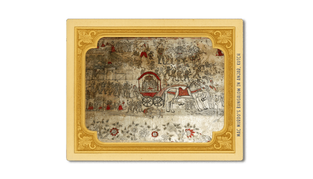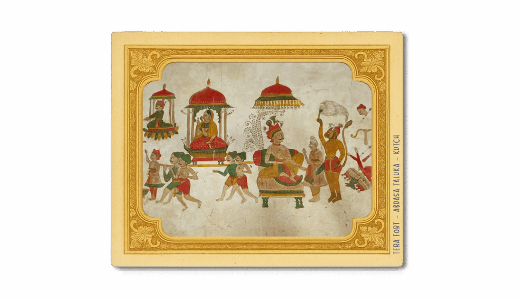 Our search led us to places like Tera Fort, MacMurdo’s Bungalow in Anjar, and a private haveli in Mundra. In each of these spaces, we found layers of story some still vibrant, others reduced to fragile fragments. Yet even those faded images spoke volumes. They revealed a once-flourishing art that reflected the life, beliefs, and imagination of its time.
