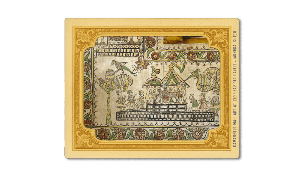 In the course of our fieldwork across Kutch, we encountered a mural tradition that once thrived but has now nearly disappeared from public memory. This is Kamangiri a visual storytelling practice that once adorned the walls of merchant homes, palaces, and public buildings between the mid-18th and early 20th century.