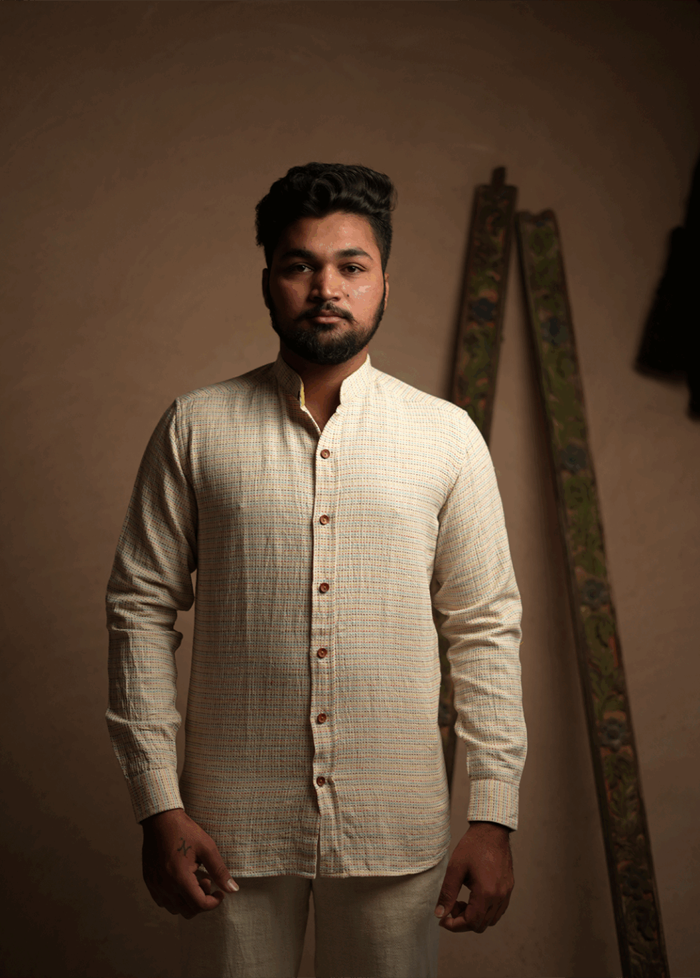 Crafted from handwoven Kala Cotton, this shirt embodies the principles of sustainability and