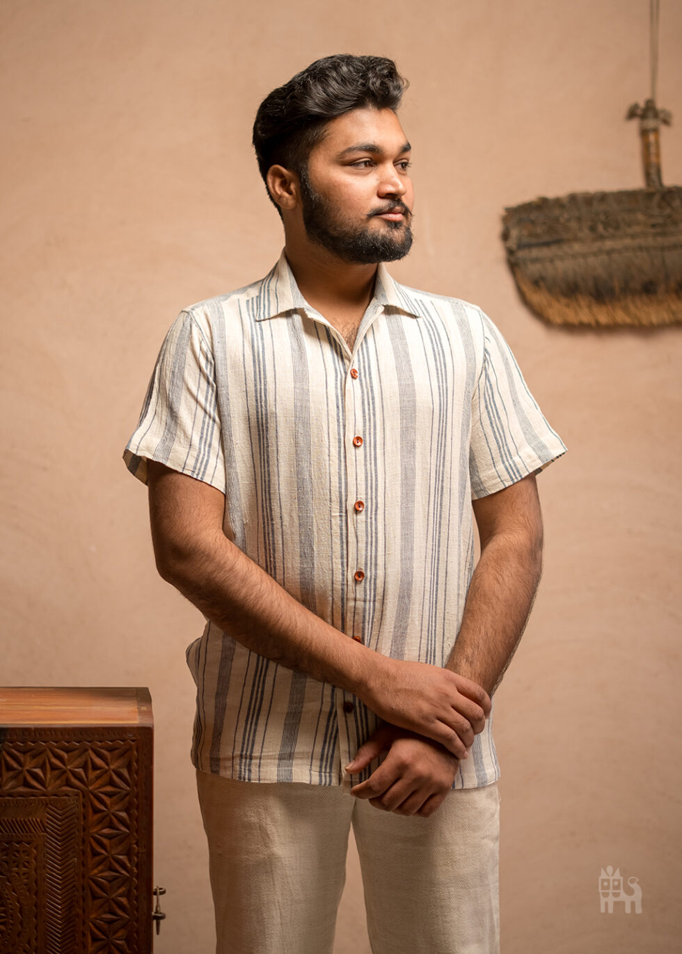 Designed with a relaxed, half-sleeve silhouette, the shirt effortlessly blends classic style with