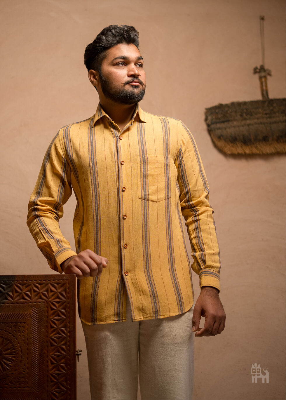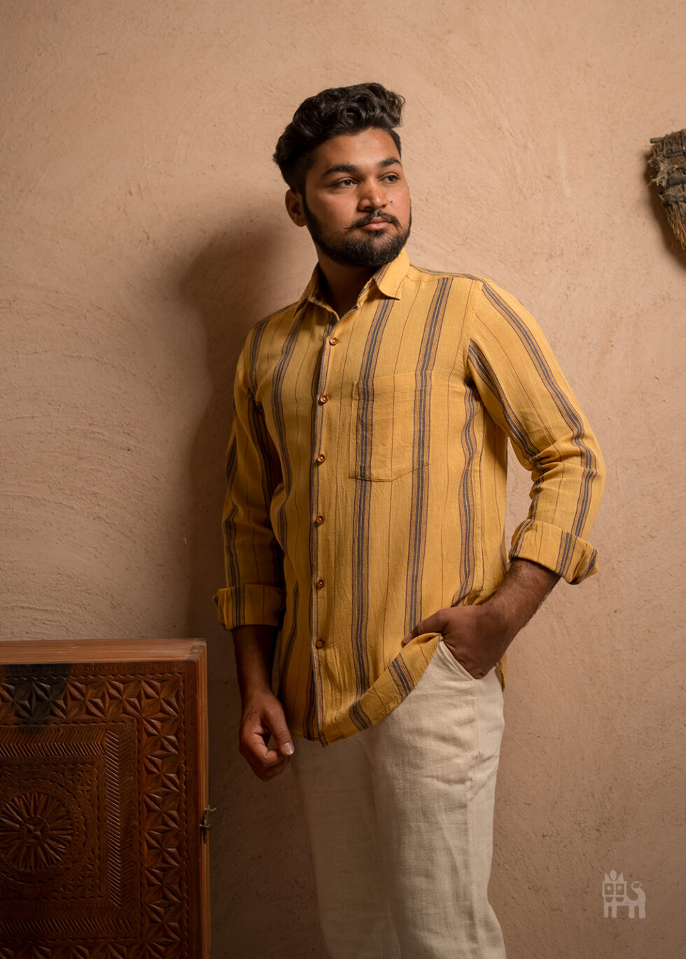 Expertly crafted from handwoven Kala Cotton, this shirt embodies sustainability and comfort.